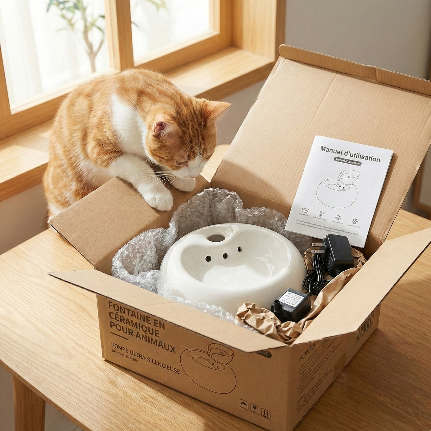 Fontaine zen : ultra silencieuse sans fil pour chats sensibles